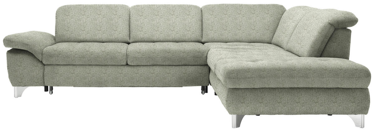Genießen Sie Ihr Rendezvous mit der wohligen Unbeschwertheit des Seins auf diesem grünen Ecksofa mit Webstoff-Bezug!