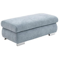 Sehenswerter Hingucker Das zarte Kolorit in Hellblau verleiht dem Polstermöbel eine harmonische Optik und fügt sich schick in verschiedene Einrichtungstrends ein. Für den Feinschliff setzen eckige Füße aus Metall in Chromfarben stimmige Akzente.