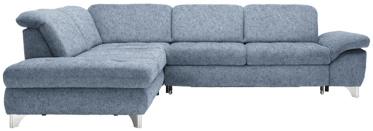 Im Lieferumfang enthalten: Genießen Sie Ihr Rendezvous mit der wohligen Unbeschwertheit des Seins auf diesem hellblauen Ecksofa mit Webstoff-Bezug!