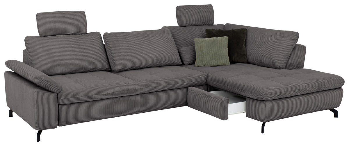 Verwöhnen Sie sich selbst mit diesem anthrazitgrauen Ecksofa mit Velours-Cord-Bezug!