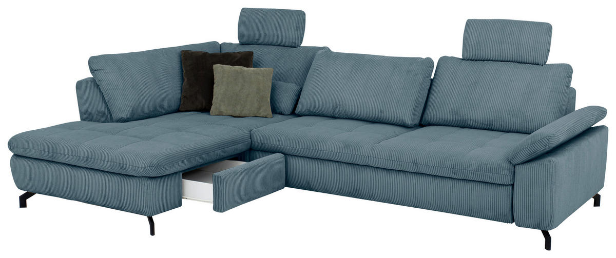 Dieses petrolfarbene Ecksofa mit Cord-Velours-Bezug zaubert Ihnen bei jeder Gelegenheit zum Ausspannen ein Lächeln ins Gesicht!
