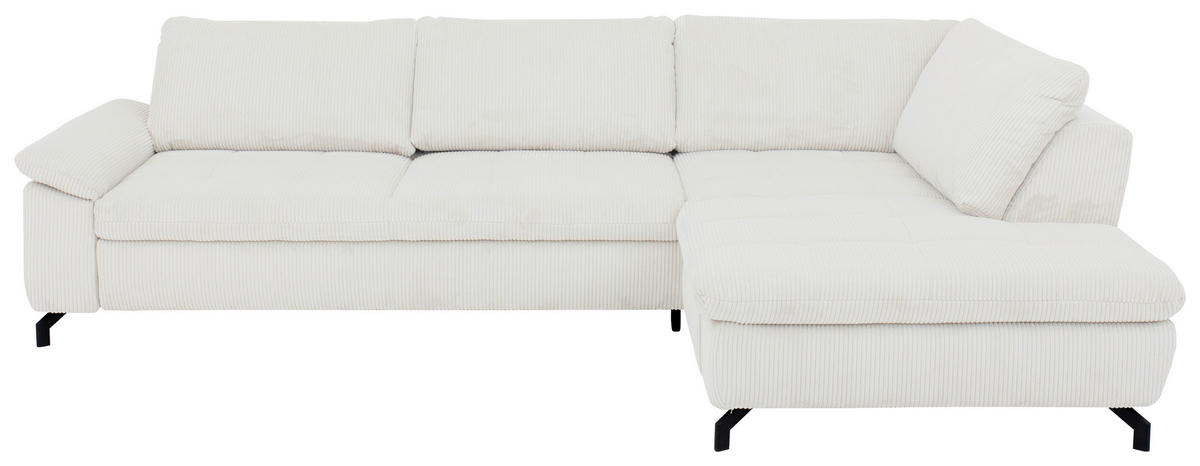 Im Lieferumfang enthalten: Eine Sonderportion Heimeligkeit schenkt Ihnen dieses creme- und naturfarbene Ecksofa mit Cord-Velours-Bezug. Greifen Sie zu!