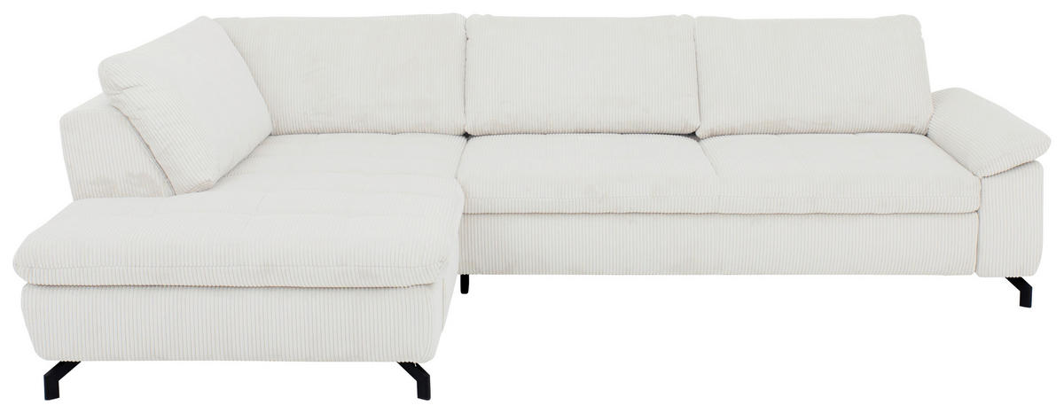 Im Lieferumfang enthalten: Verwöhnen Sie sich selbst mit diesem creme- und naturfarbenen Ecksofa mit Cord-Velours-Bezug!