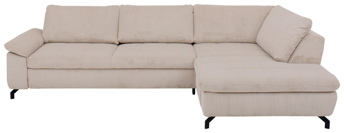 Im Lieferumfang enthalten: Ein It-Piece, das Ihren Erwartungen gerecht wird: Dieses ecrufarbene Ecksofa mit Cord-Velours-Bezug tut einiges fürs individuelle Wohnglück!