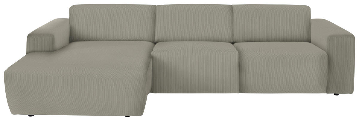 Im Lieferumfang enthalten: Ab auf Ihr taupefarbenes Ecksofa mit Feincord-Bezug!