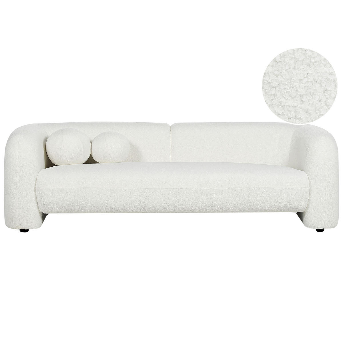 Klassisches Bouclé-Sofa mit zusätzlichen Kissen. Dieses elegante und glamouröse Sofa wird schnell zum Lieblingsstück im Wohnzimmer. Der strukturierte Bouclé-Stoff, der als Blickfang dient, ist herrlich weich und flauschig und verleiht dem Raum eine besondere Atmosphäre. Das Sofa ist nicht nur angenehm anzufassen, sondern auch strapazierfähig und pflegeleicht. Die dicke Sitzfläche und die zusätzlichen Kissen mit abnehmbaren Bezügen garantieren hohen Komfort beim Fernsehen, beim Zusammensein mit Freunden oder einfach beim Entspannen nach der Arbeit.