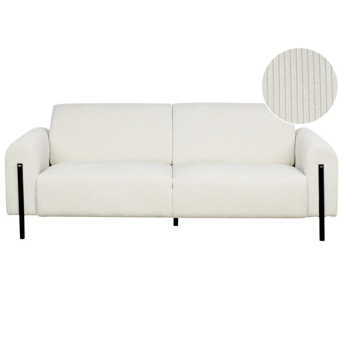 Gemütliches 3-Sitzer Cordsofa mit verstellbarer Rückenlehne. Bei diesem verstellbaren Sofa wird nicht nur Stil und Langlebigkeit, sondern auch Sitzkomfort großgeschrieben. Für das bequeme Sitzgefühl sorgt die dicke und angenehm weiche Polsterung sowie die individuell verschiebbaren Rückenlehnen, die es Ihnen erlauben, die Tiefe beider Sitzflächen zu regulieren. So können Sie Ihren Entspannungsort ganz nach Belieben anpassen. Zudem ist das Polstersofa mit einem strapazierfähigen Cordbezug versehen. Das Besondere an diesem Material ist seine angenehme Haptik sowie pflegeleichte, strukturierte Oberfläche. Die schlanken, schwarzen Metallbeine ergänzen das Design und verleihen der Couch eine komfortable Sitzhöhe.