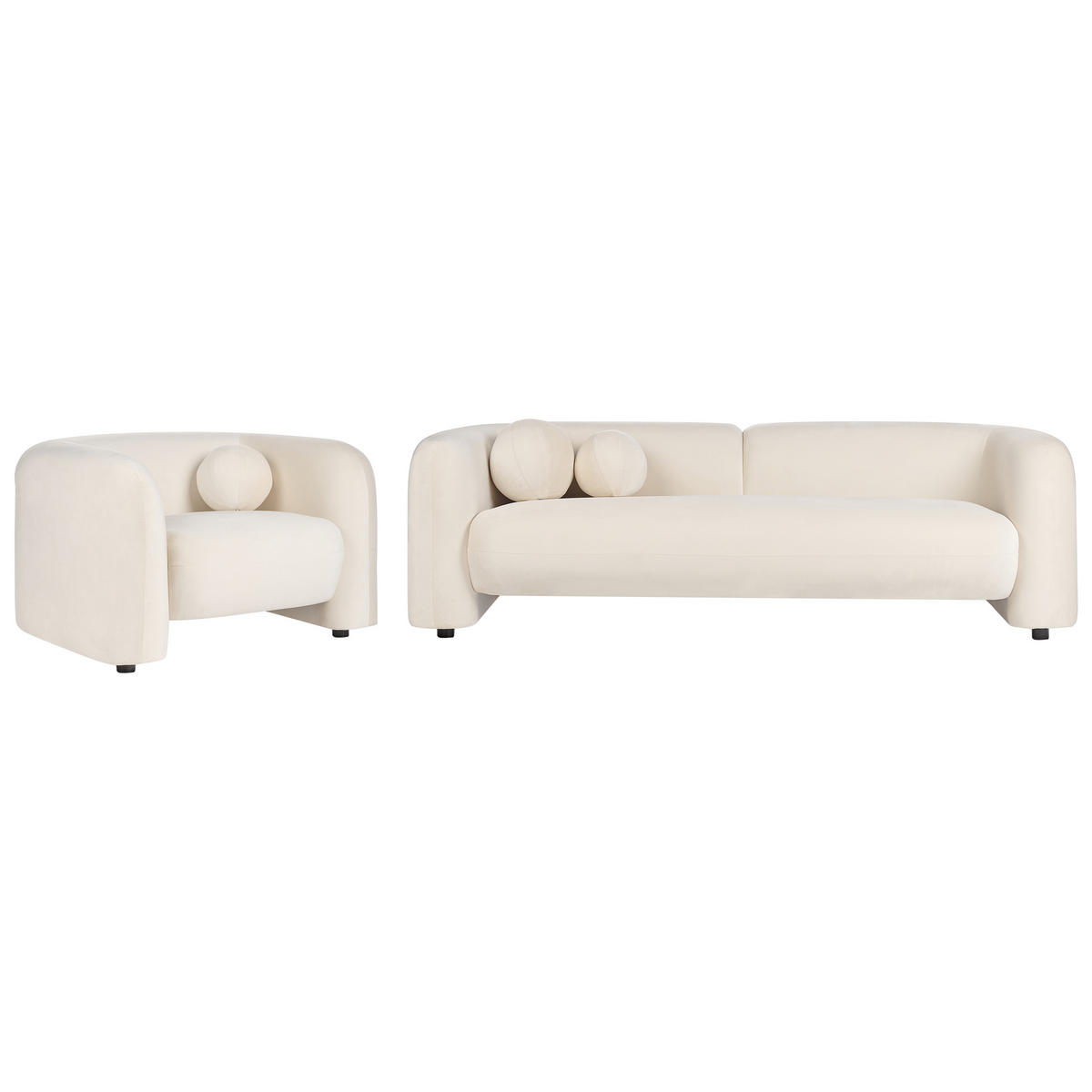 Wohnzimmergarnitur aus Samt mit runden Dekokissen. Dieses elegante, glamouröse Sofa-Set wird definitiv zum Lieblingsstück Ihres Wohnzimmers. Das Set ist aus einem sanften Samtstoff gefertigt, der sich angenehm weich anfühlt und das Ambiente des Raumes aufwertet. Die Couch und der Sessel sind darüber hinaus auch strapazierfähig und müssen nicht häufig gepflegt werden. Die dicke Sitzfläche und die zusätzlichen Kissen mit abnehmbaren Bezügen garantieren einen hohen Komfort beim Fernsehen, für Gäste oder einfach nur beim Entspannen nach der Arbeit.