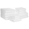 Flauschige Handtücher in verschiedenen Formen mit einem passenden Badteppich. Mit diesem Handtuch-Set ist die Wellnessoase in Ihrem Badezimmer einfach perfekt! Die Frotteetücher wurden aus qualitativer, pakistanischer Baumwolle mit Low-Twist-Fasen hergestellt, weshalb sie besonders weich und saugfähig sind. Das Frotteewäsche Set besteht aus Badematte und 10 Tüchern in verschiedenen Größen, die sowohl Ihr Gästebadezimmer, als auch privates Bad dekorativ und funktional aufwerten.