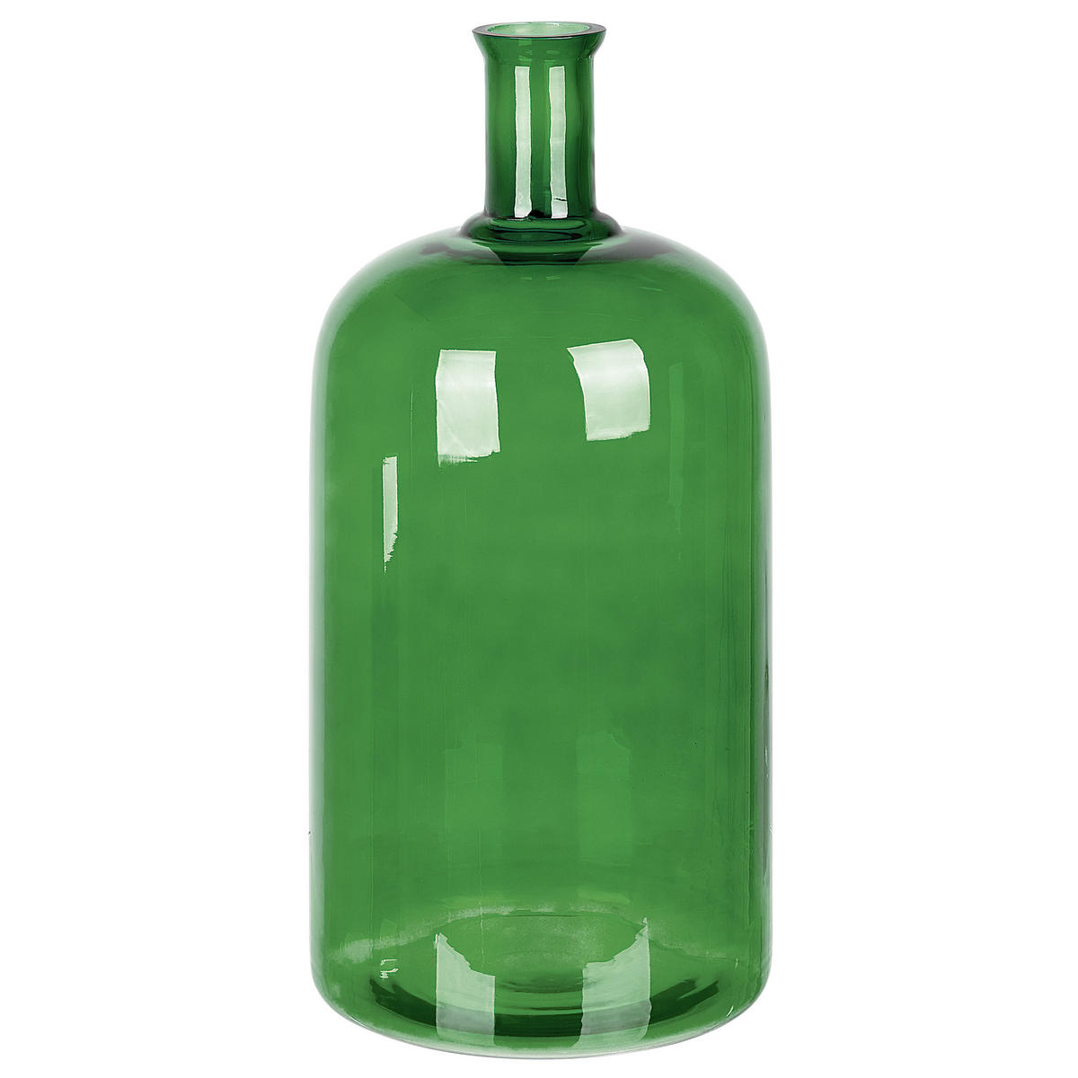 Wunderschöne Vase aus farbigem Glas. Frischen Sie den Look Ihrer Einrichtung auf und gestalten Sie sie mit dieser flaschenförmigen Vase in intensivem Grün etwas lebendiger. Die aus dickem Glas gefertigte Vase ist farbtransparent und hat einen dünnen Hals, der sich perfekt für Blumensträuße mit einem Stiel eignet. Unabhängig von der Jahreszeit wird diese Vase Ihren Raum erhellen und einen kräftigen Akzent in Ihrer Einrichtung setzen.