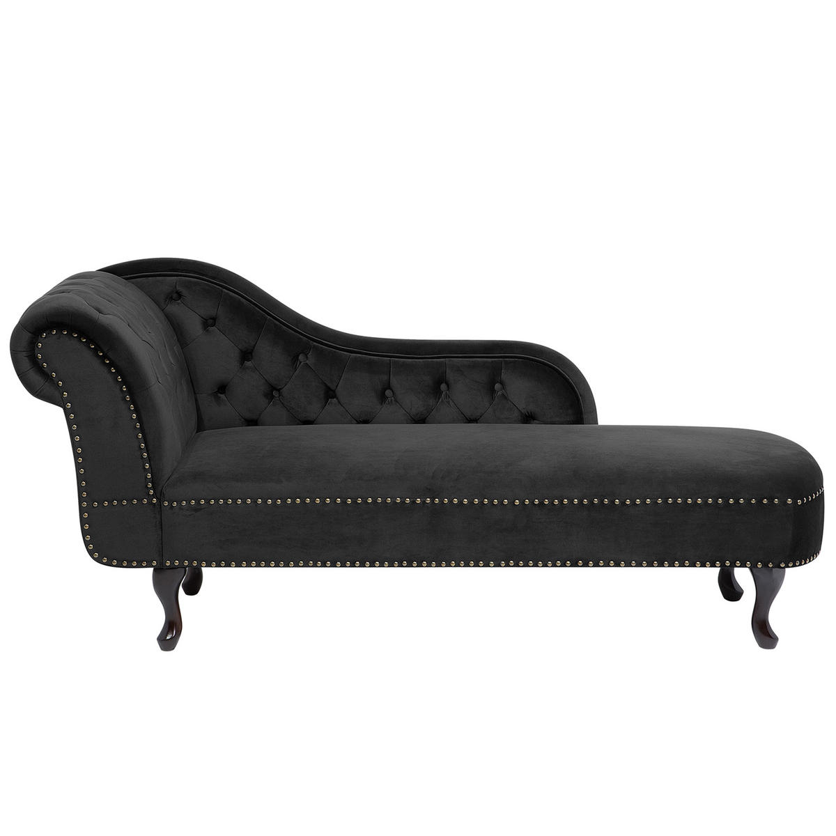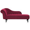 Extravagante Récamiere mit fließenden Formen. Das hochwertig verarbeitete Kanapee im Chesterfield Style wird Ihnen einen optimalen Sitzkomfort bieten. Aber auch das Design steht der Wohnlichkeit in nichts nach. Präzise wurde jeder Metallknopf, der den Samtstoff über die Polsterung spannt, gesetzt. Diese Knöpfe sind einerseits funktional aber sie geben auch der Recamiere sein besonderes Erscheinungsbild. Die geschwungenen Füße, die mit der wellenartig verlaufenden Rückenlehne perfekt harmonieren, unterstützen diesen Effekt zusätzlich. Dank der Ottomane mit Liegefunktion können Sie erholsame Stunden und auch eine elegante Einrichtung genießen.