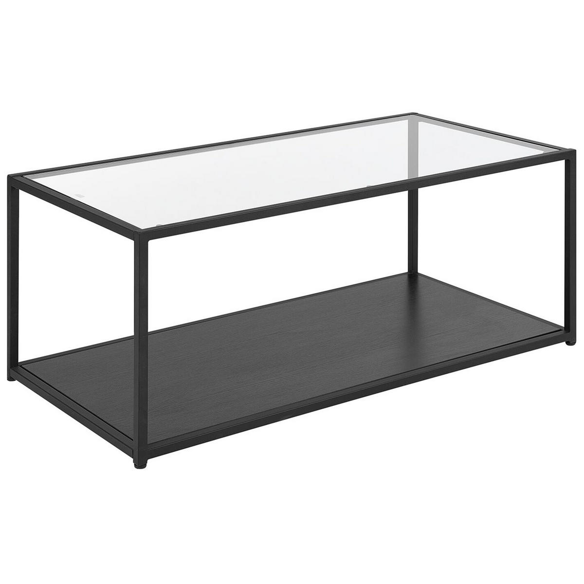 Stylischer Couchtisch im industriellen Stil . Dieser rechteckige Kaffeetisch mit schwarzem Gestell und einer Tischplatte aus Glas passt sich perfekt in jeden industriellen Wohnungsstil ein. Der zusätzliche Ablageboden stellt zudem viel Platz für Ihre Zeitschriften, Bücher oder andere Kleinigkeiten zur Verfügung. Sein zeitloser und frischer Look zieht alle Blicke Ihrer Gäste auf sich. Das präsentierte Möbelstück setzt trendige Akzente im modernen Design.