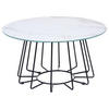 Moderner, runder Kaffeetisch mit Marmor Optik. Richten Sie mit diesem Couchtisch einen Ort der Entspannung in Ihrem Wohnzimmer ein. Er verfügt über eine breite, runde Tischplatte mit Marmoreffekt und Käfigbeinen aus Metall, die einen modernen Akzent in Ihrem Raum setzen. Stellen Sie ihn neben Ihr Sofa, so dass Sie Ihre Tasse Tee, Bücher oder anderen Gegenstände immer in Ihrer Nähe haben.