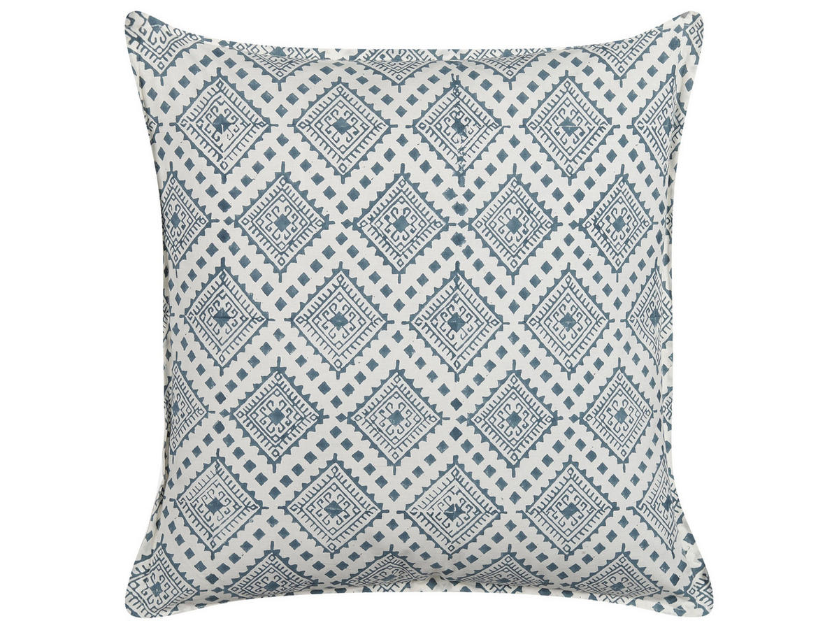 Quadratisches Zierkissen aus weicher Baumwolle mit handgefertigtem Blockdruckmuster. Dank diesem Orientkissen bringen Sie einen exotischen Look in Ihre Einrichtung. Das orientalische Motiv ist mit Liebe zum Detail per Hand auf den Kissenbezug aufgetragen worden. So ist jedes der Modelle originell und einzigartig. Die Kissenhülle besteht aus strapazierfähigen und umweltfreundlichen Baumwollfasern, die swohl für Weichheit als auch Komfort sorgen. Nutzen Sie es als Dekoartikel oder einfach als Rückenkissen beim Entspannen auf dem Sofa oder Bett. Der abziehbare Bezug und versteckte Reißverschluss macht das Kissen sehr pflegeleicht.