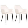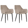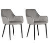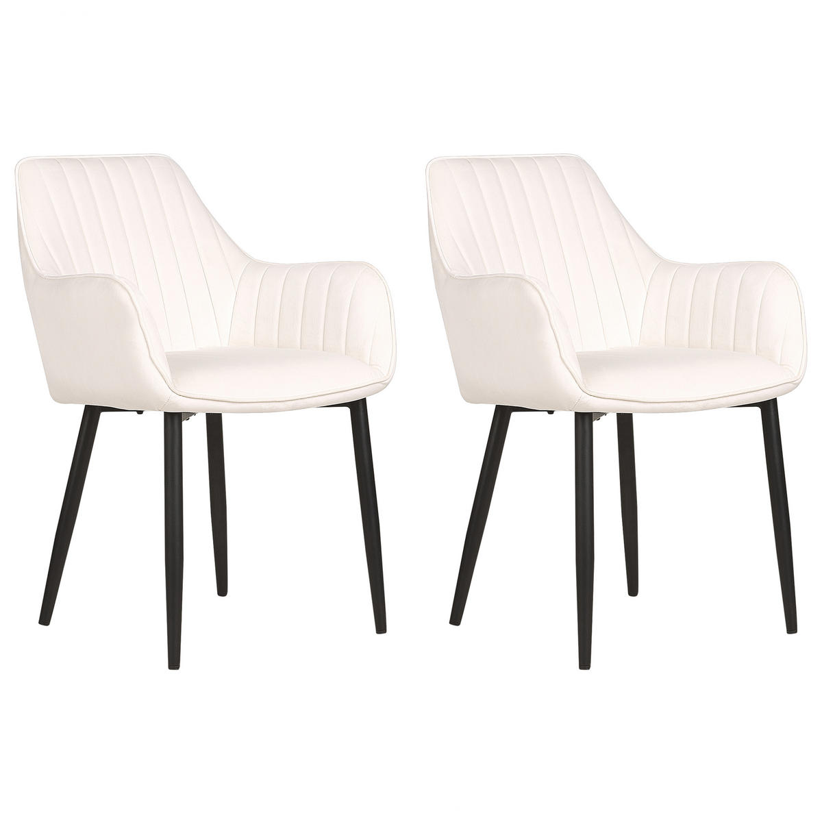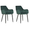 Elegante, moderne Samtstoff-Stühle im praktischen 2er Set . Ob Ess-, Wohn- oder Schlafbereich – diese modernen Stühle passen perfekt zu jedem Tisch und werden sich auch bei einer Kommode oder einem Schminktisch wundervoll bewähren. Die bequemen Sitzflächen entzücken mit ihren weichen Samtstoff-Bezügen und ihrer eleganten Formschönheit. Dank feiner vertikal verlaufender Nähte sowohl auf den Rücken- als auch Armlehnen und der schwarzen Metallbeine erhalten die Stühle einen besonders glamourösen Look.