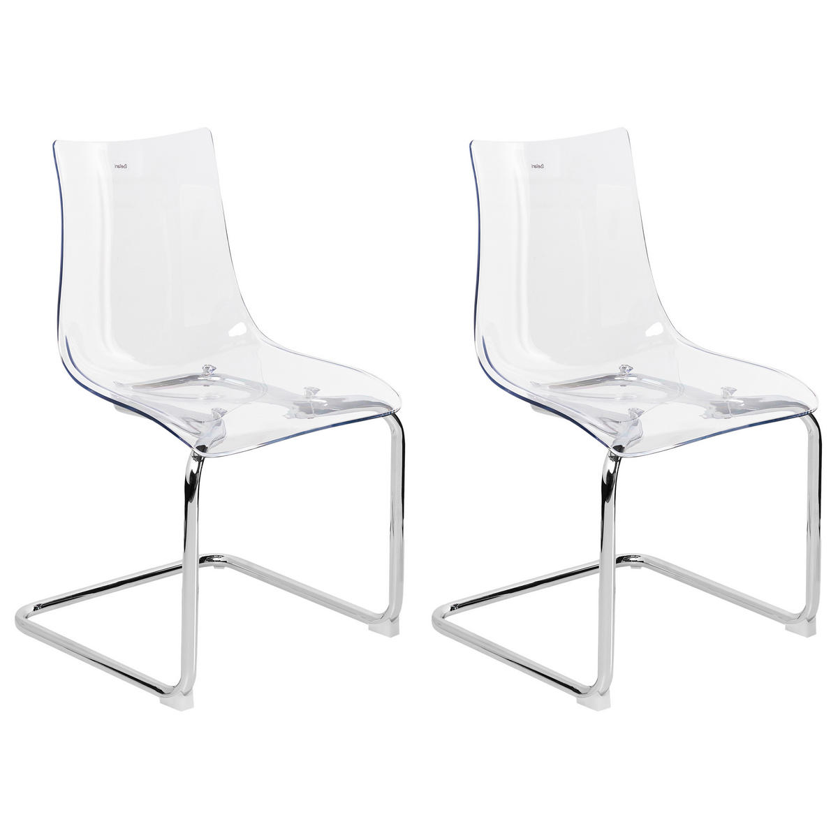 Moderne, durchsichtige Freischwinger-Stühle. Schaffen Sie ein stilvolles und modernes Ambiente mit diesem Stuhl-Set, das sich sowohl für Esszimmer als auch für Küchen eignet. Die transparente Farbe hebt die Metallbeine elegant hervor und sorgt so für eine einzigartige moderne Ästhetik. Ohne Armlehnen passen sie unter jede Tischplatte, und ihr durchsichtiges Design lässt sich in verschiedene Einrichtungsstile einfügen.