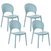 4 hellblaue Kunststoffstühle für den Innen- und Außenbereich. Diese Stühle mit geschwungenen Rückenlehnen und in schöner hellblauer Farbe bringen Funktionalität und modernen Stil in Ihr Zuhause. Da sie aus Kunststoff gefertigt sind, können sie in der Küche, im Essbereich oder sogar im Freien verwendet werden. Sie haben keine Armlehnen, passen somit unter jede Tischplatte und lassen sich leicht stapeln und verstauen. Praktisch und schön zugleich, ist dieses Stuhlset ein Must-Have in jedem Innen- und Außenbereich.