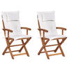 Beliani GARTENSTUHL 2er-Set Akazienholz hellbraun Auflagen cremeweiß Maui