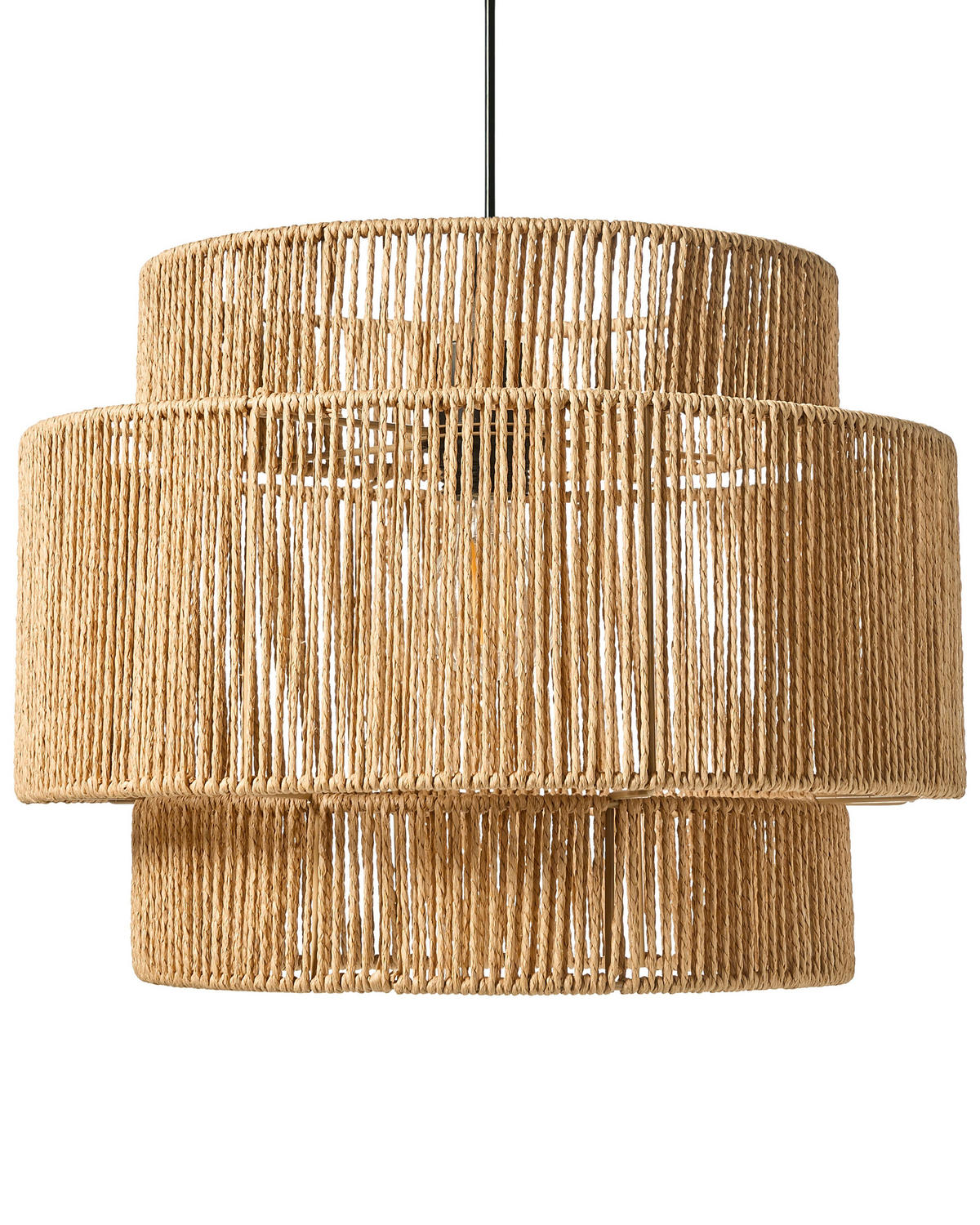 Boho-Deckenleuchte mit gedämpftem Licht. Diese Hängeleuchte mit einem Schirm aus Papierseil verleiht jedem Interieur eine natürliche Note. Der durchbrochene Schirm sorgt für ein warmes, stimmungsvolles Licht und wirft ein wunderschönes Licht- und Schattenspiel an Ihre Wände und Decke. Der Sockel aus Eisen mit matter Oberfläche ist langlebig und stabil und macht diese Leuchte zu einer praktischen und zugleich stilvollen Beleuchtungslösung für jedes Zuhause. Dank des leichten, vom Boho-Stil inspirierten Designs eignet sie sich ideal für Wohnzimmer, Essbereich oder Schlafzimmer.