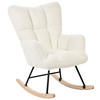 Moderner Schaukelstuhl aus Bouclé-Stoff. Schaffen Sie eine gemütliche Ecke, in der Sie sich mit diesem Schaukelstuhl entspannen und abschalten können. Der Sessel hat einen weichen Bouclé-Bezug und ist mit einer attraktiven Steppung versehen. Auf Gummibaumholzkufen platziert, bietet der Stuhl eine sanfte Schaukelfunktion, was ihn zu einer großartigen Ergänzung für Wohn-, Schlaf- oder Kinderzimmer macht. Setzen Sie sich mit Ihrem Kind auf den Sessel und beobachten Sie, wie es im Nu einschlafen wird. Dank der modernen Farbe und des schönen Designs kann er mit verschiedenen Einrichtungsstilen kombiniert werden - von Retro bis modern.