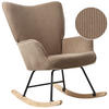Gemütlicher Schaukelstuhl mit breiter Rückenlehne. Dieser stilvolle Schaukelstuhl ist ein großartiger Platz zum Entspannen und passt zu vielen Einrichtungsstilen. Er ist mit weichem Cordstoff gepolstert, der strapazierfähig und langlebig ist. Hochwertige Beine aus Eisen und Gummibaum in klassischem Schwarz sorgen für Stabilität. Die breite Rückenlehne und die stützenden Armlehnen sorgen für ein bequemes und sicheres Sitzerlebnis. Die getönte Farbe fügt sich mühelos in eine Vielzahl von Räumen ein, vom Kinderzimmer bis zum Wohnzimmer.