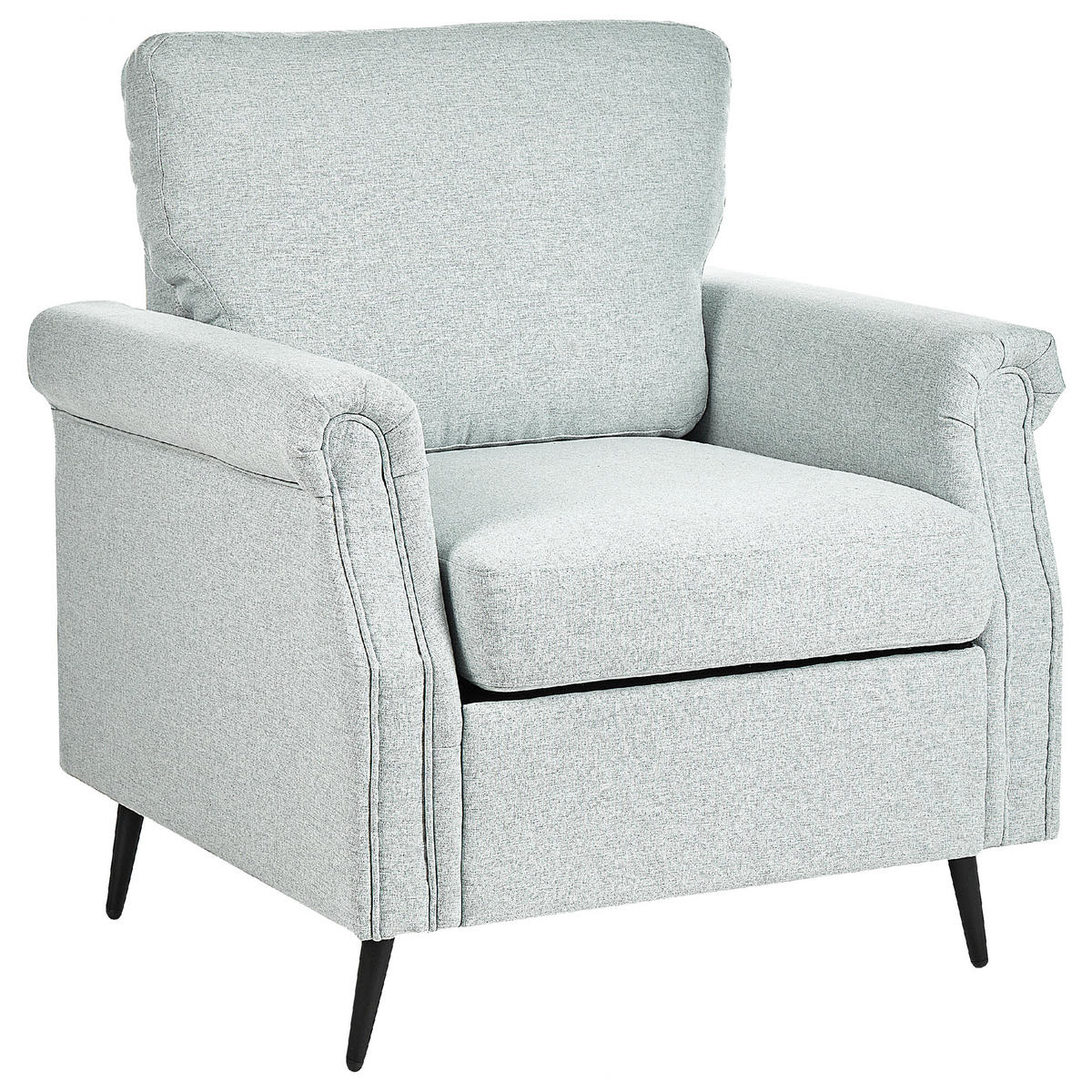 Gemütlicher Polstersessel mit weichem, hellgrauem Bezug. Elegante Ausstrahlung trifft auf hohen Sitzkomfort! Dieser stilvolle Stoffsessel ist das perfekte Möbelstück für alle, die es gerne bequem und stilvoll haben. Sein eleganter, strapazierfähiger Stoffbezug, die schlanken Metallbeine und die Holzkonstruktion sind eine Garantie für jahrelange Qualität. Die dick gepolsterten Kissen verleihen dem Sessel Gemütlichkeit und die abnehmbaren Hüllen sorgen für eine einfache Pflege.