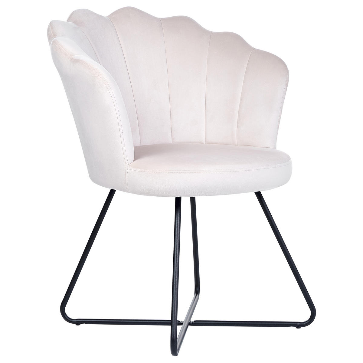 Retro-Sessel mit schwarzem Metallgestell und formschöner Rückenlehne im Muschel-Design. Bringen Sie mit diesem edlen Samtsessel einen Retro-Touch in Ihren Wohnraum. Er verzaubert nicht nur mit ansprechenden und hochwertigen Materialien, sondern auch mit seiner vortrefflichen Designschönheit. Seine muschelförmige Rückenlehne ist ein auffälliges Element, dass ihn zu einem Hingucker in jeder Einrichtung macht und Ihnen gleichzeitig eine bequeme Sitzposition verspricht. Der weiche, geschmeidige Samtbezug sorgt für einen eleganten Schimmer und das schwarze, gekreuzte Kufengestell verleiht dem Muschel-Sessel eine optimale Stabilität.