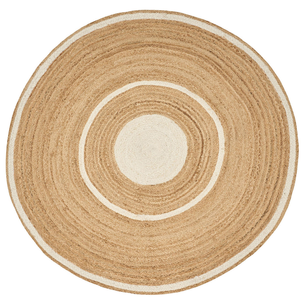 Handgewebter, runder Juteteppich mit dekorativen, cremeweißen Kreisen. Mit seinen natürlichen Jute-Farbtönen und cremeweißen Kreisen verleiht dieser Kurzflor-Teppich Ihren Räumen ein entspanntes Boho-Flair. Er besteht aus hochwertigen Jute- und Baumwollfasern, die Ihnen viel Komfort bieten, sehr langlebig und strapazierfähig sind. Deshalb kann er auch gut in Räumen platziert werden, die stark frequentiert sind. Zudem ist er von Hand mit Liebe zum Detail gefertigt und für Fußbodenheizungen geeignet.