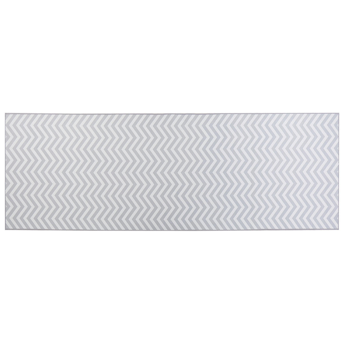 Moderner Teppichläufer mit Zickzack-Muster in Weiß und Grau. Dieser Teppich im Zickzack-Muster ist ein Must-have für jedes Zuhause im traditionellen Design. Er ist aus sehr strapazierfähigem und pflegeleichtem Stoff gefertigt und eignet sich ideal als Accessoire für den Flur, das Wohnzimmer oder ein Schlafzimmer. Die Anti-Rutsch-Rückseite garantiert eine sichere Verwendung, egal in welchem Raum Sie ihn auslegen. Dekorieren Sie Ihren Wohnraum mit diesem Teppich in zeitlosem Design und genießen Sie sein klassisches und zugleich außergewöhnliches Aussehen.