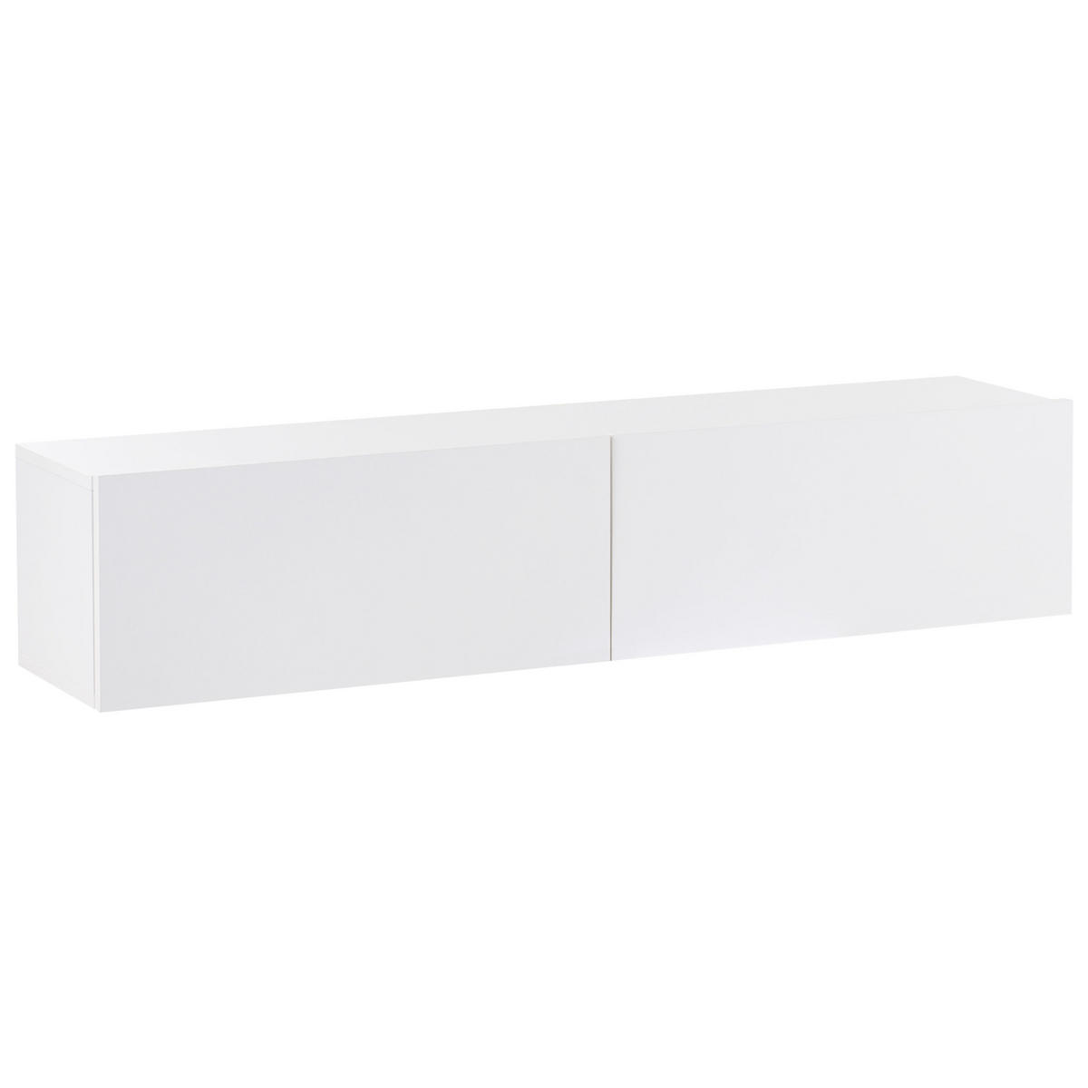 Schmaler TV-Hängeschrank mit 2 Klapptüren. Bereichern Sie Ihre Fernsehwand mit diesem stilvollen, dennoch geräumigen Lowboard. Da der TV-Schrank an der Wand montiert wird, können Sie ihn flexibel auf jeder Wunschhöhe anbringen. Er besitzt eine robuste Konstruktion, so können Sie ihn nicht nur als einfachen Hängeschrank nutzen, sondern auch einen bis zu 70-Zoll-Fernseher darauf abstellen. Die ergänzende Melaminbeschichtung sorgt dafür, dass der TV-Hängeschrank äußerst widerstandsfähig gegen Abrieb und Kratzer ist. Zudem besitzt er zwei geschlossene Fächer, in denen Sie Elektrogeräte und andere Gegenstände ordentlich unterbringen können. Sowohl die stilvolle einfarbige Optik als auch die grifflosen Fronten sorgen für einen angesagten Look, der sicherlich zu jeder modernen Raumgestaltung passen wird.