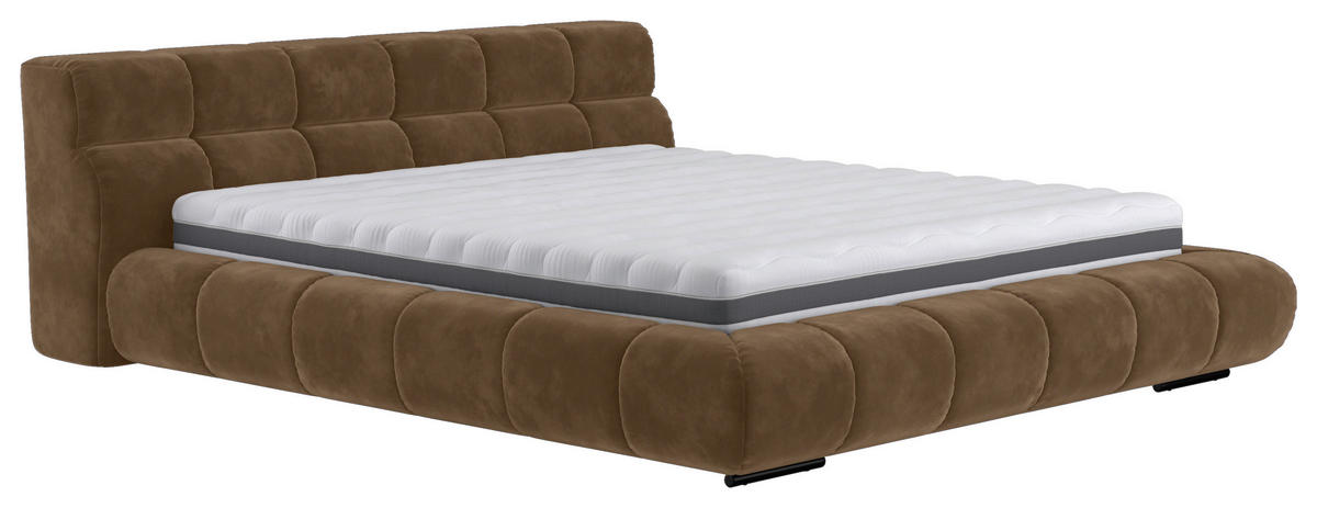 Ans gepolsterte Kopfteil lehnen Sie sich gerne an, um zu lesen, abzuschalten oder einfach die Gedanken wandern zu lassen. Machen Sie jede Nacht zur besten Zeit des Tages mit diesem Polsterbett (ca. 200 x 200 cm) in Schlammfarben inklusive gepolstertem Kopfteil!