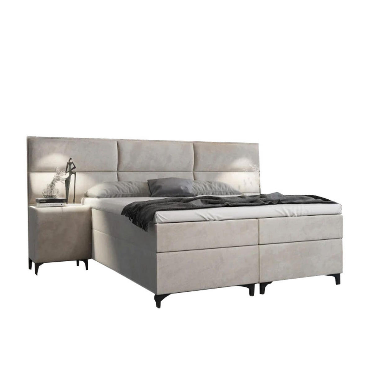 BOXBETT Sapri mit Bettkasten und 2x Nachtisch - Hellgrau, Holz/Holzwerkstoff (140/200cm) - Best For HomeBest For Home