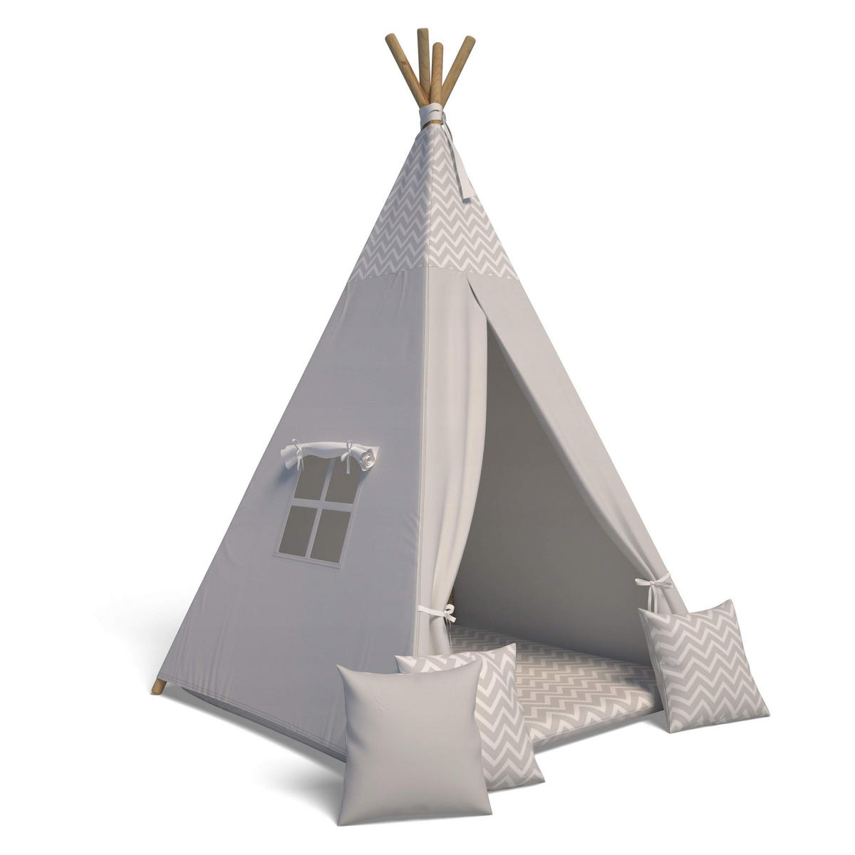 TIPI-ZELT 105 x 105 x 140 cm Zickzack grau mit weichen Kissen | Spielzelt für Kinderzimmer Indoor - Grau, Textil (105/105cm) - Best for Kids