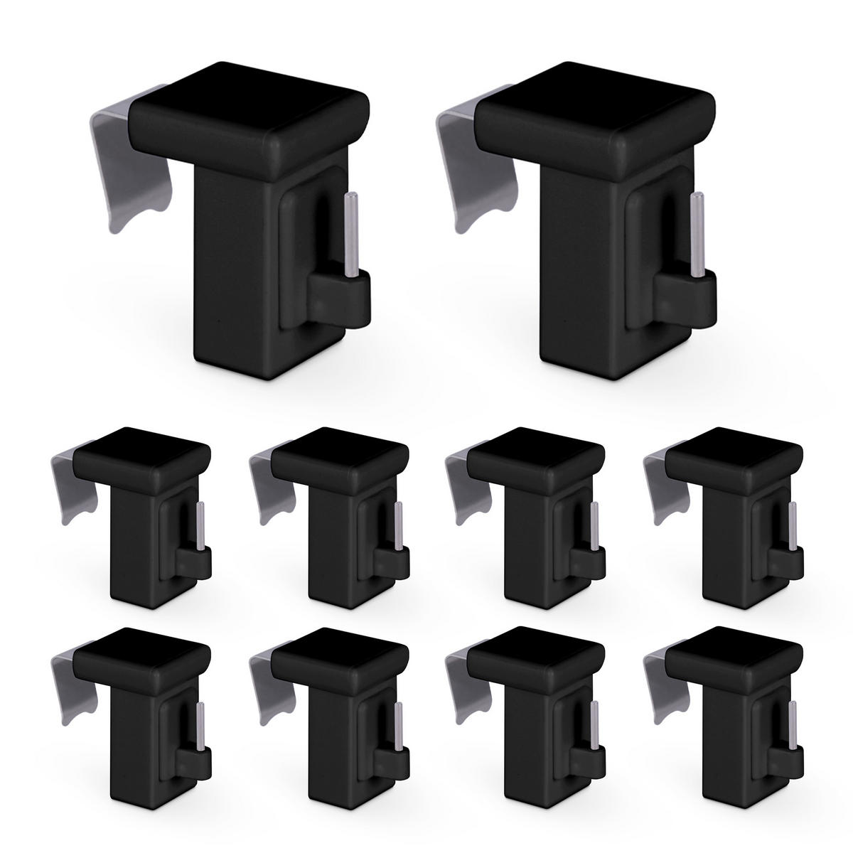 Gefertigt aus stabilem Kunststoff überzeugen die Klemmträger durch ihre dauerhafte Funktion und Widerstandsfähigkeit. Sie lassen sich jederzeit rückstandslos entfernen und an einem anderen Fenster erneut einsetzen. Das schwarze Design passt besonders gut zu modernen Einrichtungen und dunklen Fensterrahmen und ergänzt eine zeitgemäße Fensterdekoration.