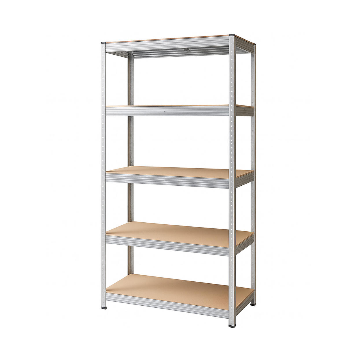 Der verzinkte Stahlrahmen verleiht dem Regal die nötige Robustheit und schützt vor Korrosion, solange die Zinkschicht unbeschädigt bleibt. Die fünf strapazierfähigen MDF-Böden tragen jeweils bis zu ca. 75kg und verteilen die Last gleichmäßig. So entsteht ein sicheres, standfestes Regalsystem, das auch bei voller Beladung zuverlässig stabil bleibt.
