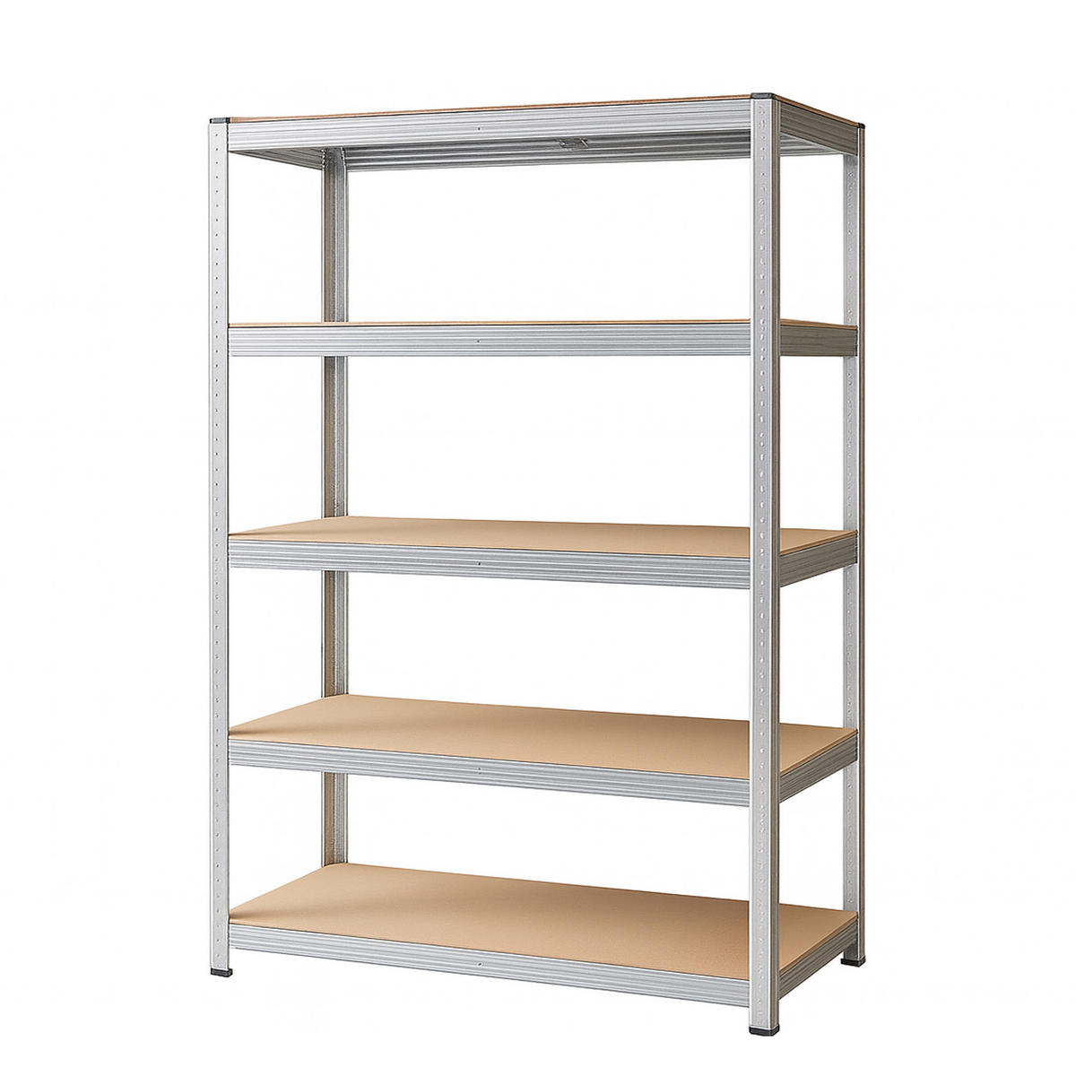 Wenn sich Kartons, Werkzeuge oder Getränkekisten stapeln, braucht es eine Lösung, die dauerhaft standhält. Dieses Schwerlastregal kombiniert einen verzinkten Stahlrahmen mit fünf belastbaren MDF-Böden und trägt insgesamt bis zu ca. 875kg. Jeder einzelne Boden ist mit ca. 175kg belastbar und bietet damit zuverlässige Stabilität für schwere Maschinen, Reifen, Vorräte oder Werkstattzubehör.