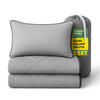 Das hochwertige Mikrofasergewebe ist weich, atmungsaktiv und feuchtigkeitsregulierend. Gleichzeitig lässt sich das Set bei bis zu 60 °C waschen, wodurch Bakterien und Allergene zuverlässig entfernt werden. Decke und Kissen können auch ohne zusätzliche Bettwäsche genutzt werden – ideal, wenn es schnell gehen muss oder Gepäck reduziert werden soll.