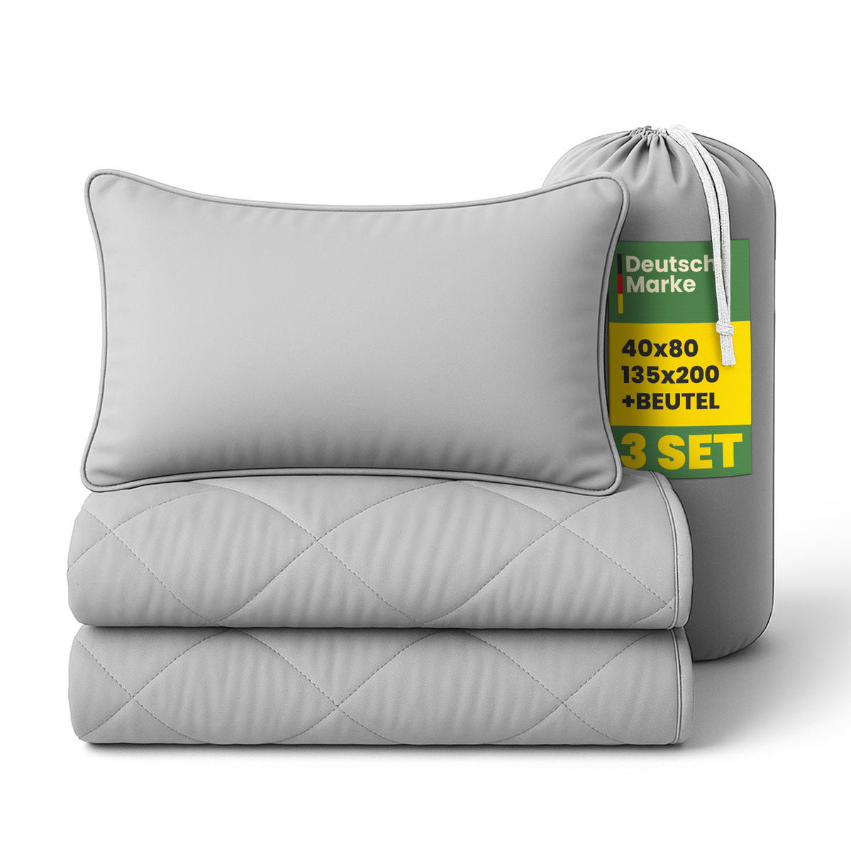 Im Lieferumfang enthalten ist ein praktischer Reisebeutel, der Decke und Kissen kompakt zusammenhält. So bleibt alles ordentlich verstaut und nimmt im Koffer oder Auto nur wenig Platz ein. Dank robuster Verarbeitung, langlebiger Materialien und OEKO-TEX® Zertifizierung ist das Bettenset eine zuverlässige Lösung für alle, die auch unterwegs nicht auf sauberen und komfortablen Schlaf verzichten möchten.