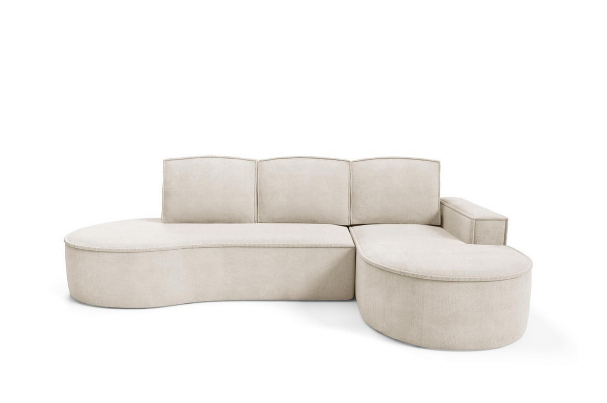 DasEcksofa FLOW mit Schlaffunktion ist ein Designermöbelstück mit einer einzigartigen, organischen Form, das Ihrer Einrichtung einen modernen Charakter und maximalen Komfort verleiht. Die abgerundeten Seiten und die ergonomische Sitzfläche sorgen für außergewöhnlichen Komfort, während die seitliche Armlehne eine freie Armablage ermöglicht und so den Komfort erhöht.