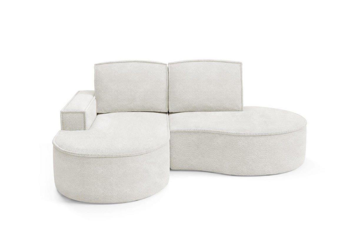 DasEcksofa FLOW ist ein Designermöbelstück mit einer einzigartigen, organischen Form, die dem Raum einen modernen Charakter verleiht. Die abgerundeten Seiten und die konturierte Sitzfläche sorgen für Komfort und außergewöhnliche Ästhetik. Darüber hinaus verfügt es über eine seitliche Armlehne, die den Komfort erhöht, da man den Arm frei aufstützen kann.
