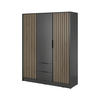 Die Vorderseite des stilvollen Nelly-Kleiderschranks ist mit den in dieser Saison sehr modischen Lamellen verziert, die dem Schrank Dreidimensionalität verleihen. Dank dieser Lamellen sieht der Schrank großartig aus und wird Ihre Gäste sicher beeindrucken. Der elegante Kleiderschrank ist außerdem mit geräumigen Schubladen und einer Stange zum Aufhängen von Kleidung ausgestattet.