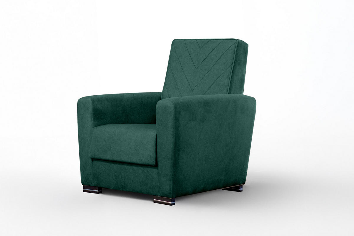 Der Sessel VERA ist ein elegantes Möbelstück, das modernes Design mit außergewöhnlichem Komfort verbindet. Die subtile rautenförmige Steppung auf der Rückenlehne verleiht dem Sessel Charakter und macht ihn zu einem interessanten dekorativen Element in jedem Interieur. Die Füllung des Sessels besteht aus Schaumstoff und gewellten Federn, die für Komfort und guten Halt beim Sitzen sorgen.