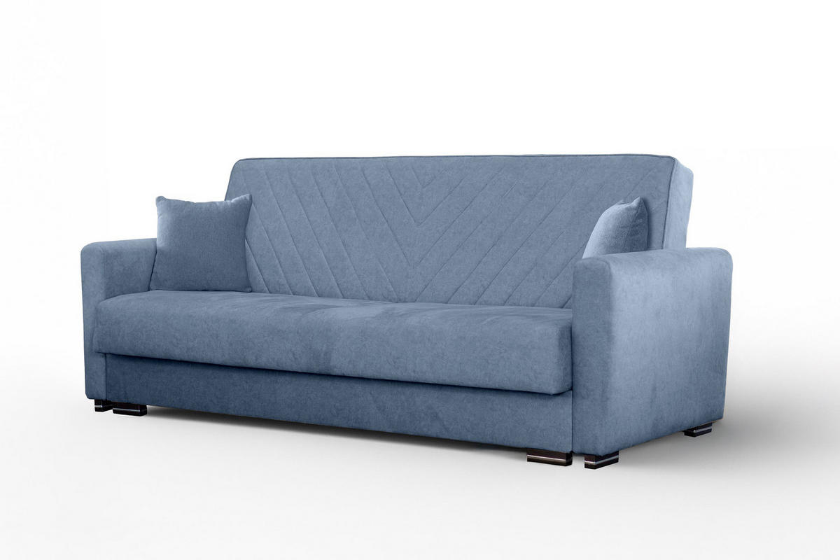 Das VERA-Sofa ist mit einer Schlaffunktion ausgestattet, dank der es sich leicht in ein bequemes Bett verwandeln lässt, um eine angenehme Nachtruhe zu ermöglichen. Darüber hinaus ist der integrierte Bettzeugbehälter sehr praktisch, denn er ermöglicht die bequeme Aufbewahrung von Kissen, Decken oder anderen Dingen, die Sie immer griffbereit haben möchten. Das Sofa passt perfekt in jedes Wohnzimmer und verbindet einen eleganten Look mit hoher Funktionalität.