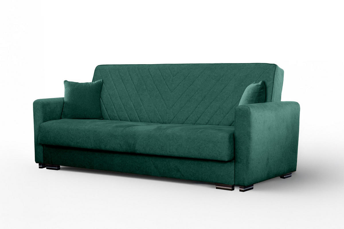 Das VERA-Sofa ist mit einer Schlaffunktion ausgestattet, dank der es sich leicht in ein bequemes Bett verwandeln lässt, um eine angenehme Nachtruhe zu ermöglichen. Darüber hinaus ist der integrierte Bettzeugbehälter sehr praktisch, denn er ermöglicht die bequeme Aufbewahrung von Kissen, Decken oder anderen Dingen, die Sie immer griffbereit haben möchten. Das Sofa passt perfekt in jedes Wohnzimmer und verbindet einen eleganten Look mit hoher Funktionalität.