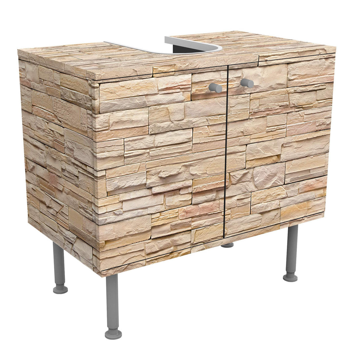 Bilderwelten WASCHBECKENUNTERSCHRANK Asian Stonewall - Große helle Steinmauer aus wohnlichen Steinen 60/55/35 cm