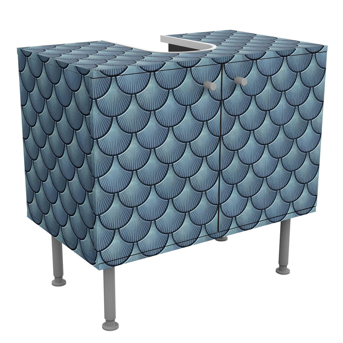 Bilderwelten WASCHBECKENUNTERSCHRANK Muschel Fliesen Keramikoptik Blau 60/55/35 cm