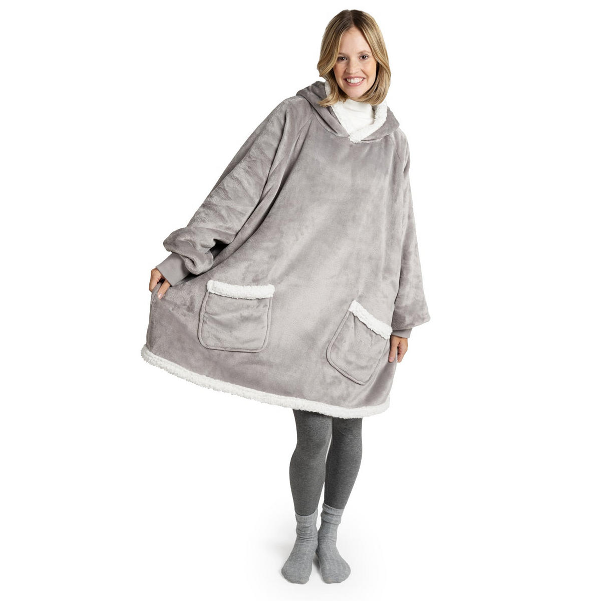 Mit der Blumtal Hoodie Decke erlebst Du das wohlige Gefühl einer warmen Decke ohne, dass Du dabei auf die Freiheit Deiner Hände verzichten musst! Kuschel Dich ein in Deinen Deckenpullover und genieße warme Lesestunden! Unser Decken Hoodie ist OEKO-TEX zertifiziert und sicher für Deine Haut! Der weiche Microfaser-Stoff wird Dir gemütliche Winternachmittage auf der Couch bescheren! Noch kuscheliger wird es mit unserem gefütterten Sherpa-Modell. Falls Dein gemütlicher Blanket Hoodie schmutzig werden sollte, kannst Du ihn ganz bequem in der Waschmaschine bei 40 C° reinigen. Für ein optimal flauschiges Ergebnis trockne die Pulli Decke schonend im Trockner. Egal, ob du deinen Kuschel Hoodie auf der Couch, im Garten oder im Homeoffice trägst - der Kuschelpullover kann ganz bequem wie ein normales Kleidungsstück getragen werden! Genieße überall flauschige Momente! Wähle den passenden Deckenpulli aus unserem Standard-Modell und dem Sherpa-Modell mit extra weicher Sherpa-Fütterung aus und mache Deinen Liebsten damit eine Freude! Für eine besonders kuschelige Weihnachtszeit!