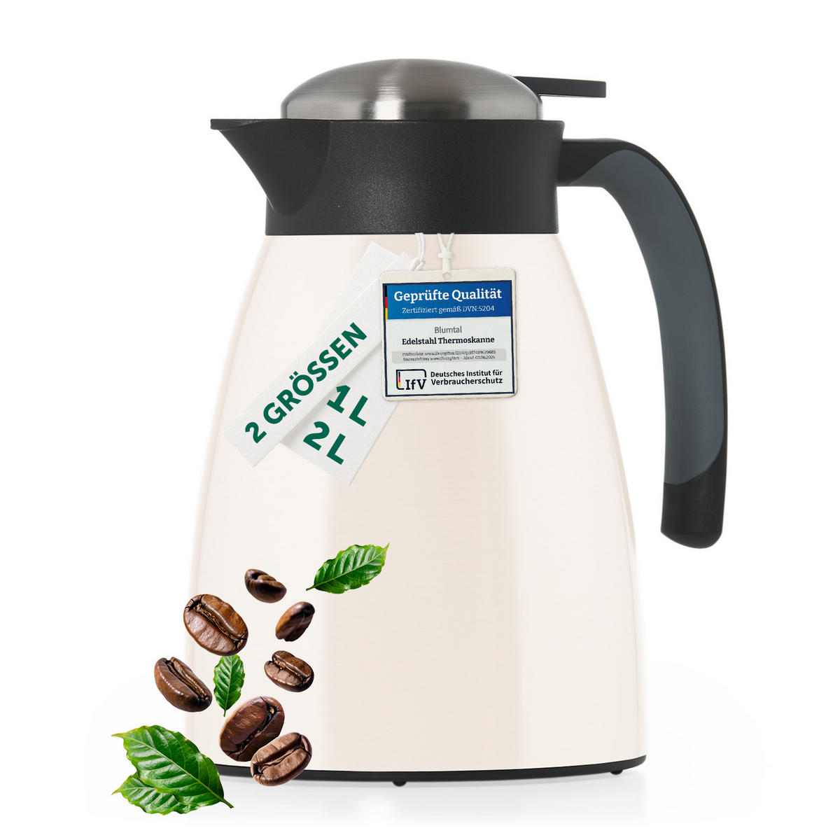 Blumtal THERMOSKANNE Carla 2L Weiß – Große Isolierkanne 2000 ml