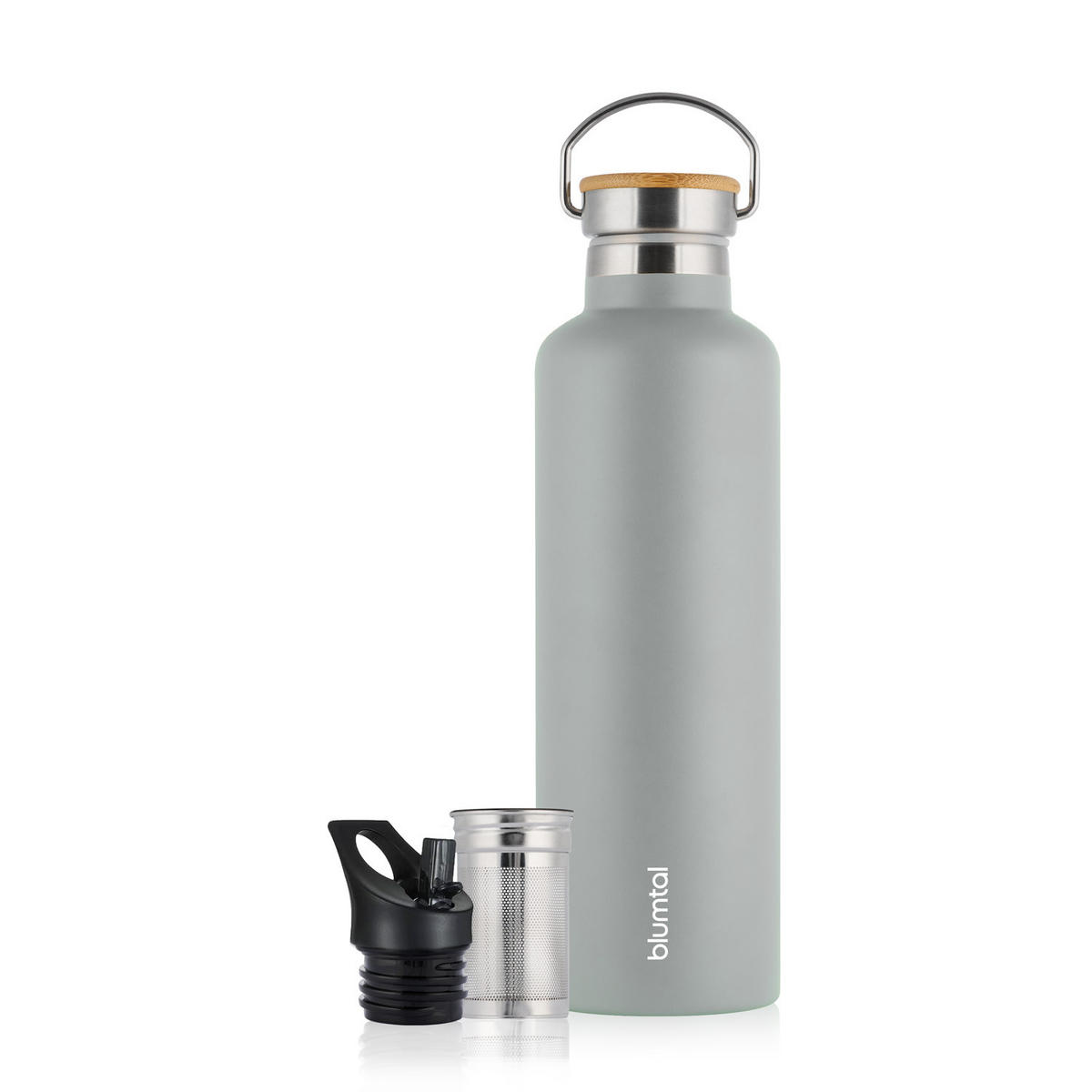TRINKFLASCHE Leni 750 ml, inkl. Teesieb und Sportdeckel - Grau, Metall (0.75L) - BlumtalBlumtal
