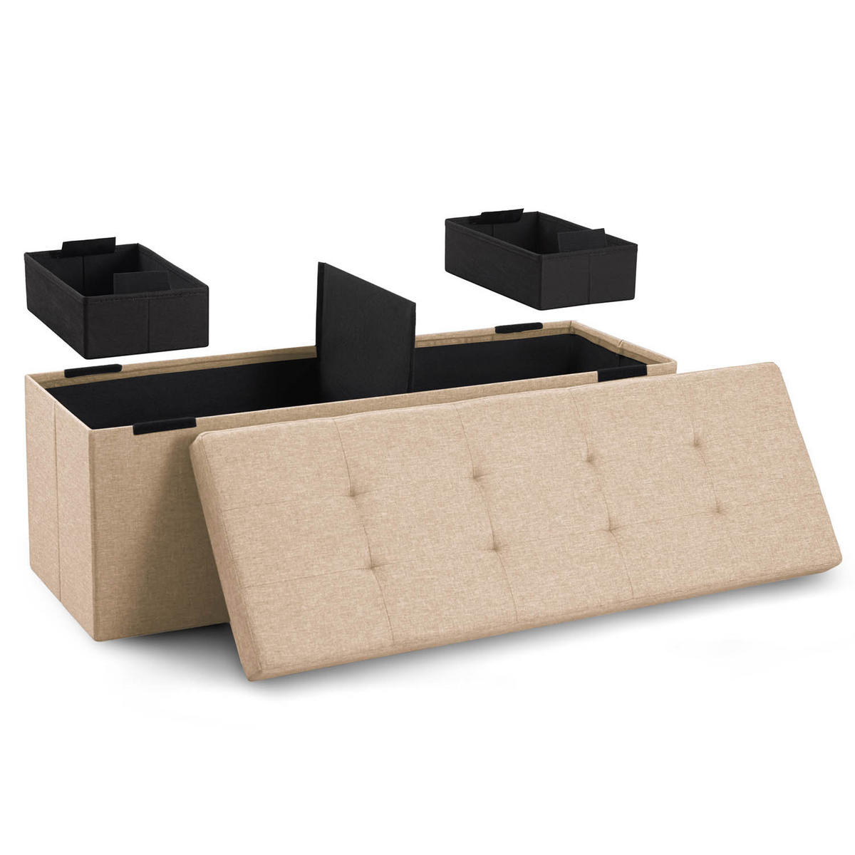 Blumtal TRUHENBANK 110/38/38 cm + 2 extra Boxen, Beige